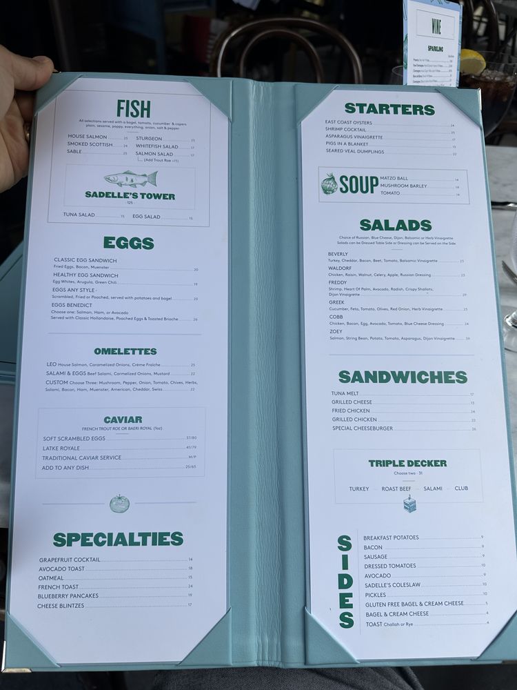 Sadelle's, located in New York City, offers a trendy and classy dining experience with a focus on bakery, sandwiches, and breakfast/brunch options. The menu caters to a variety of dietary preferences, including gluten-free, vegan, and vegetarian options. The restaurant provides a unique ambiance, complete with outdoor seating and a full bar. Customers rave about the quality of the dishes, with favorites like the French toast, eggs Benedict, and house salmon receiving high praise. Despite higher prices, patrons appreciate the delicious food, attentive service, and chic atmosphere. Reservations are recommended due to high demand, and guests are advised to arrive early to avoid long wait times. Overall, Sadelle's is a must-visit for those seeking a memorable dining experience in the heart of NYC.